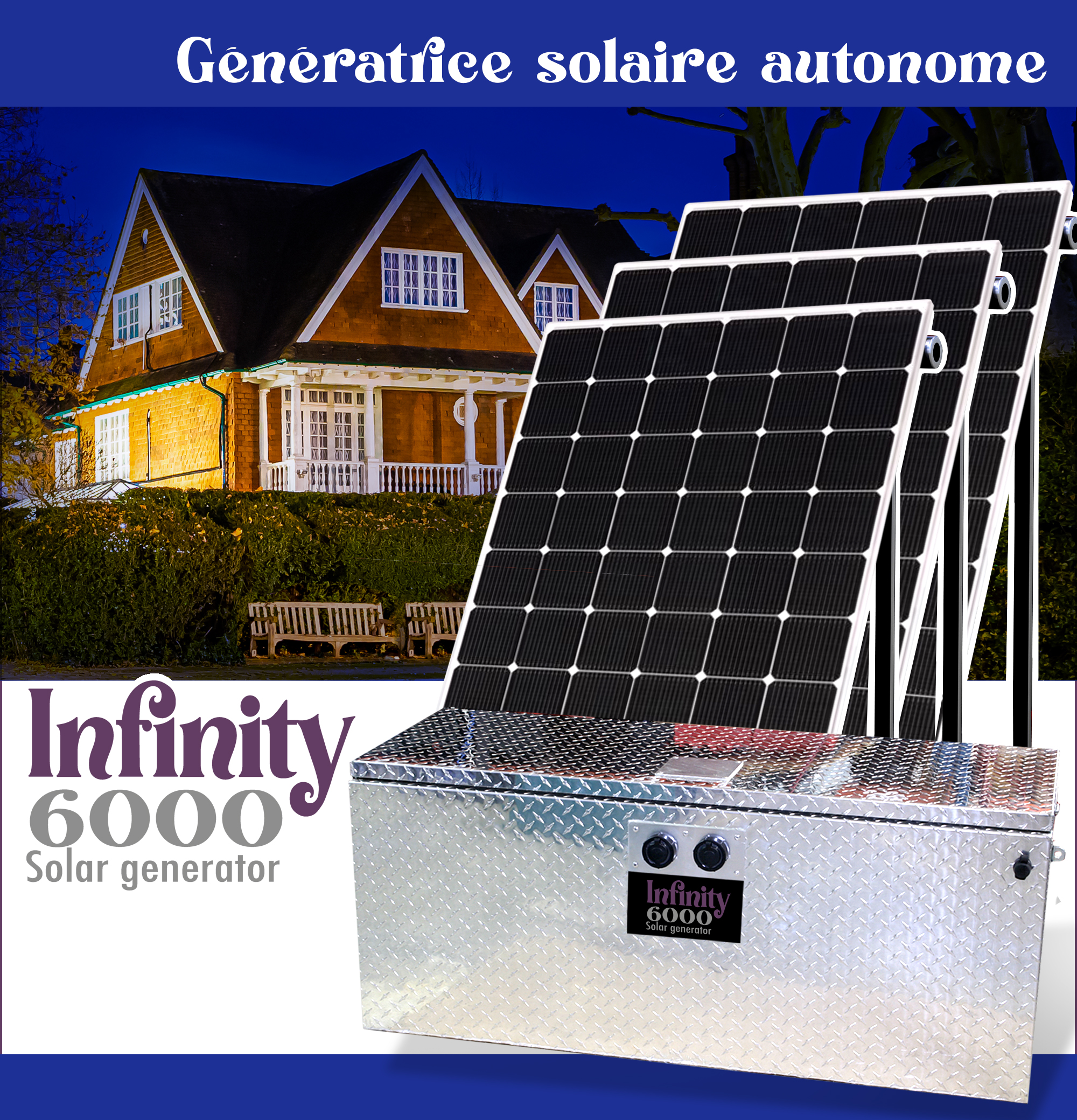 Nos génératrices solaires autonomes INFINITY offre un niveau de confort exceptionnel par leur puissance, leur grande fiabilité et leur facilité d’installation et d’utilisation. Vous ne vivrez plus jamais les coupures électriques de la même façon.
